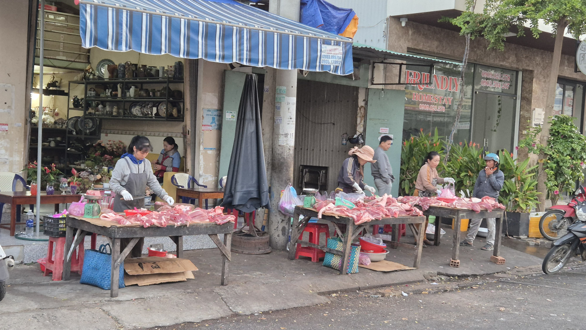 Das einfache Städtchen Kon Tum liegt am Dak Bla River auf 525m. Wir blieben zur Erholung 4 Nächte im Hotel Friendly Homestay. Abgesehen vom Gewerbe das früh morgens um 4h im Parterre Fleisch hackend den Tag einklopfte, war alles perfekt und gemütlich. Um die Gegend zu erkunden, mieteten wir bei der Besitzerin für 3 Tage ein Moto.