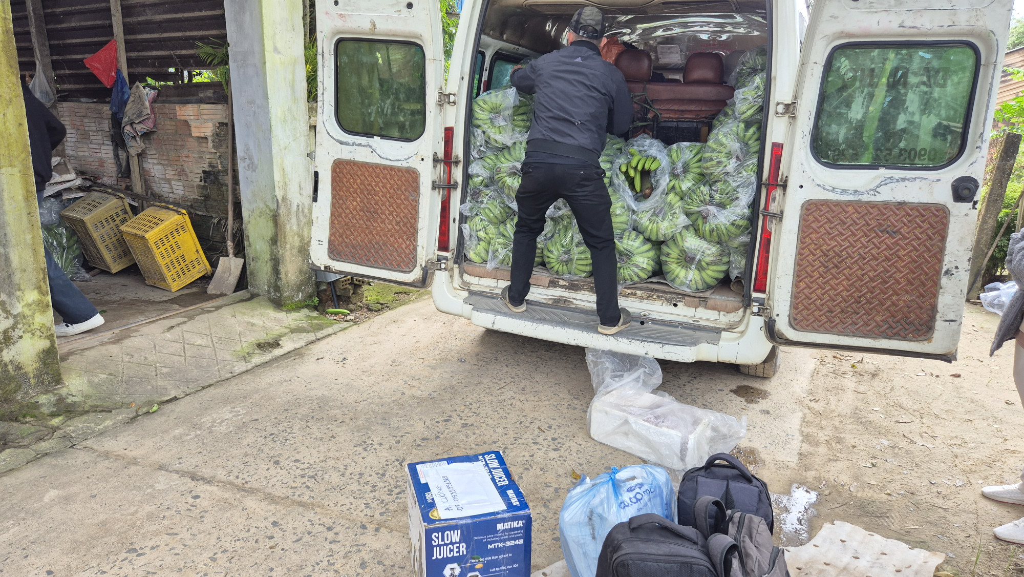 Langsam planten wir unsere Weiterfahrt nach Da Nang. Da wir auf der letzten Busfahrt (16Plätzer) zu wenig Platz hatten, versuchten wir eine bessere Variante zu finden. Vom Regen in die Traufe. Unser Bus nach Da Nang entpuppte sich als eigentliches Transportunternehmen. Der Besitzer lud an jeder Ecke Menschen auf, alle mit Gepäck, es wurde immer enger und enger. Der uralte Bus, hatte durchgesessene Sitze und dröhnte entsprechend. Als wir dachten, naja es ist zwar eng, aber ein wenig Platz hatten wir ja noch, da hielten wir in einem Dorf auf dem Land an und der Bus wurde bis unters Dach mit grünen Bananenstrünken vollgestopft. Unter den Sitzen Schachteln, wir mussten effektiv um unsere Sitzplätze kämpfen. Anstatt das versprochene bequeme Sitzen mit genügend Beinfreiraum und einer 5h Fahrt, hatten wir die schlimmsten Sitze die man sich vorstellen konnte, keinen Beinfreiraum und 7.5h Fahrt. Zuletzt wurden wir irgendwo in der Vorgegend von Da Nang mehr oder weniger gefühlt rausgeschmissen und waren beide stinke sauer.